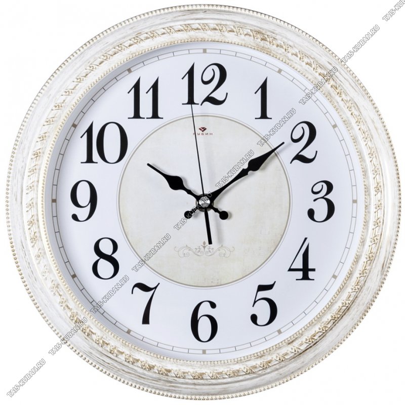 Часы (стекло/пластик) круг.d28,5см "Вернисаж" корпус рельеф.белый с золотом п/у (10)