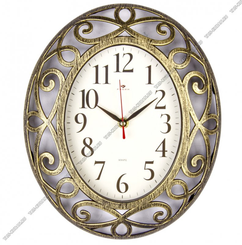 Часы (стекло/пластик) овал (31х26см) "Завитки" корпус резн.,черный с золотом, п/у (10)