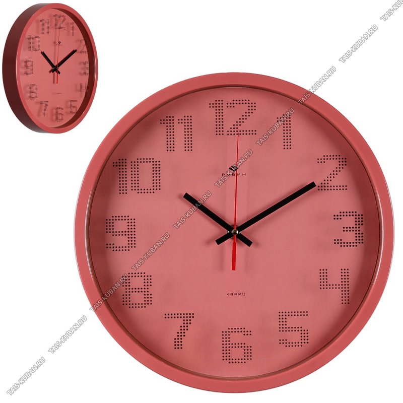 Часы (стекло/пластик) d30см "Пиксели/Темно-розовые"
