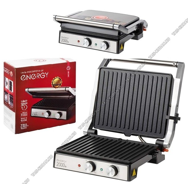 2 съемные плиты с а/п, открытие на 180°, регулировка температуры, корпус пластик+нержавеющая