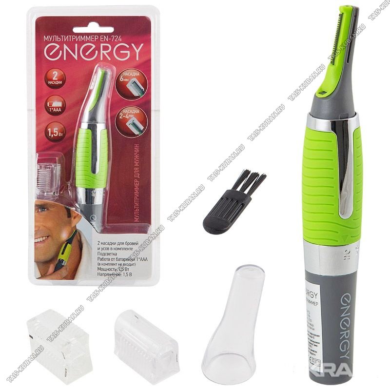 Триммер д/носа,ушей и бровей, нержав.лезвие,подсвет,защит.копачок, щетка д/очист,пит.1*ААA (не в комп-те) зел-сер