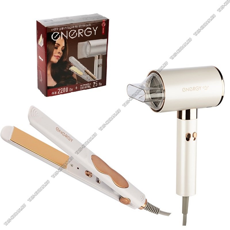 фен(2200ВТ,2скорости, 3режима температуры, холодный воздух, концентратор,фунция ионизации), выпрям(алюминиевые 25Вт пластины 21х85мм, максимальная t200)