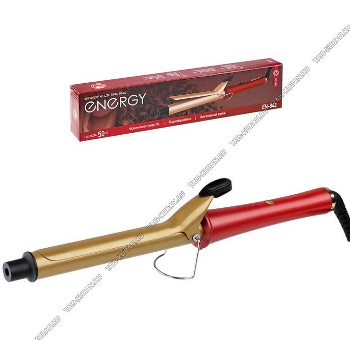 Электрические щипцы для завивки локонов, керамическое 50Вт d25мм, красный/золото (24)