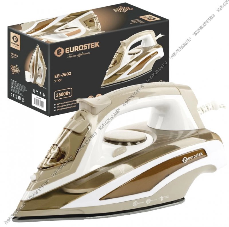 мощность 2600В, керамическая подошва, система самоочистки, встроенная защита от накипи, функция разбрызгивания, вертикальное отпаривание, мерный стаканчик