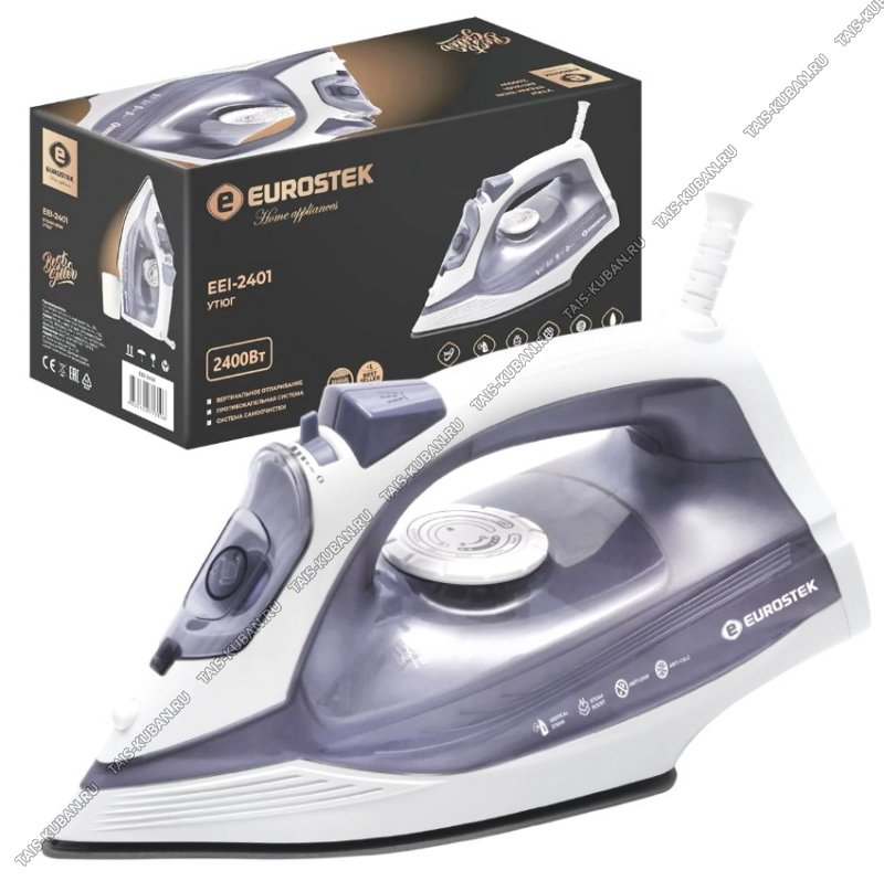 мощность 2400В, керамическая подошва, система самоочистки, встроенная защита от накипи, функция разбрызгивания, вертикальное отпаривание, мерный стаканчик