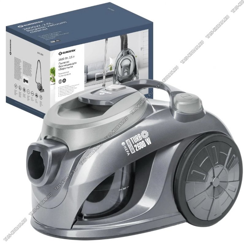 Пылесос 2600Вт. мощн.всас.450Вт,пылесбор.2,5л.(контейнер),многоступ.сист.фильтрац,автосмотка,телескоп.мет.труба,щетка 2в1 (ковер/пол,щелевая),ножной вкл/выкл,серебро