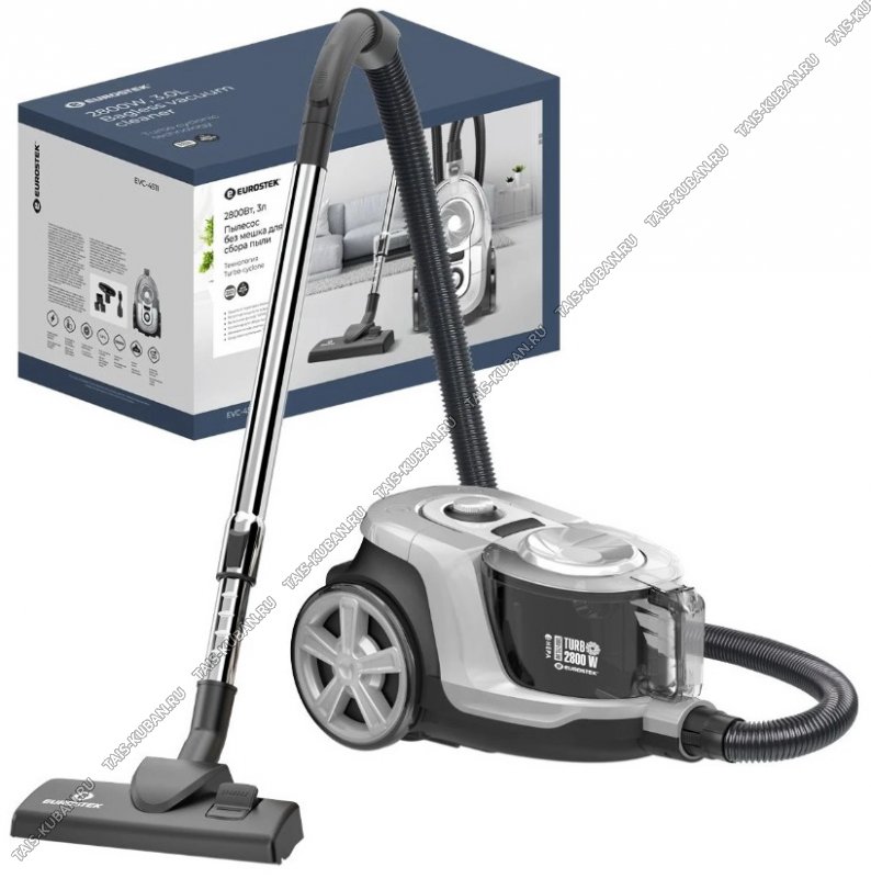 Пылесос без мешка Eurostek EVC-4511 технологияМУЛЬТИ-ЦИКЛОН, Многоуровневая система фильтрации: HEPA-фильтр+ микрофильтр, Максимальная мощность2800 Вт., мощность всасывания 500 Вт., телескопическая металлическая трубка и щетка для пола, объем пылесборника 3 литра, длина шнура 7 метров, защита от перегрева, автоматическая смотка шнура, насадки в комплекте (щелевая/ насадка-щетка)