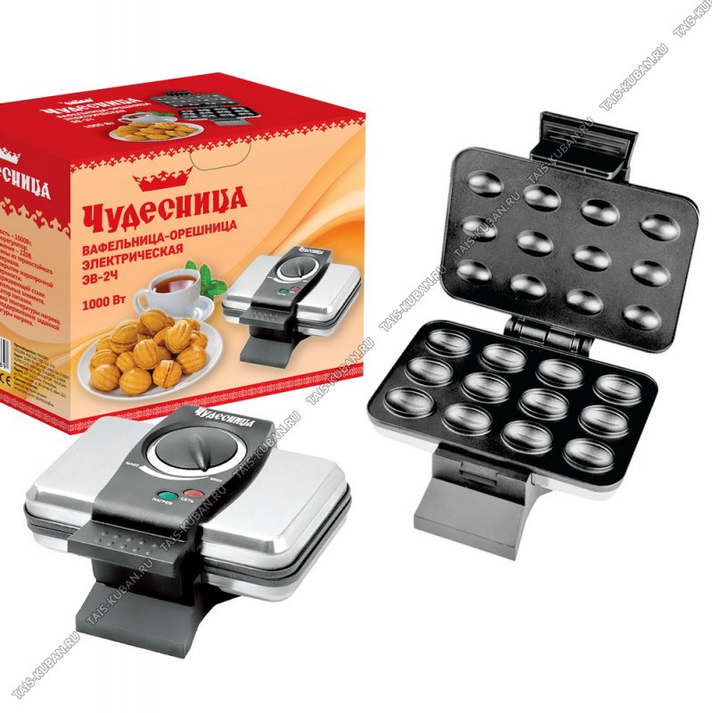 Вафельница Чудесница 1000Вт "Орешница" 12 полуформ, тефлоновое А/П покрытие, нержавеющий корпус (1)