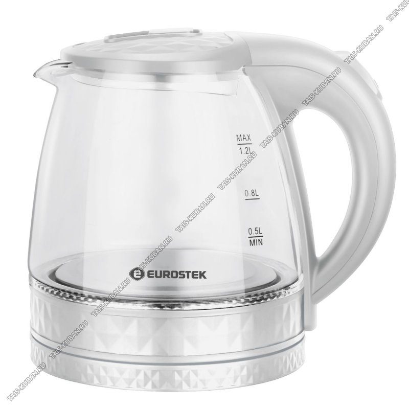 Чайник электрический «Eurostek» EEK-3003, 1500 Вт, Объем 1.2 л , Корпус из стекла и пластика, кнопка открывания крышки, шкала уровня воды, дисковый нагревательный элемент, световая индикация работы, вращение чайника на подставке на 360, автоматическооое отключение при закипании и при недостаточном количестве воды.
