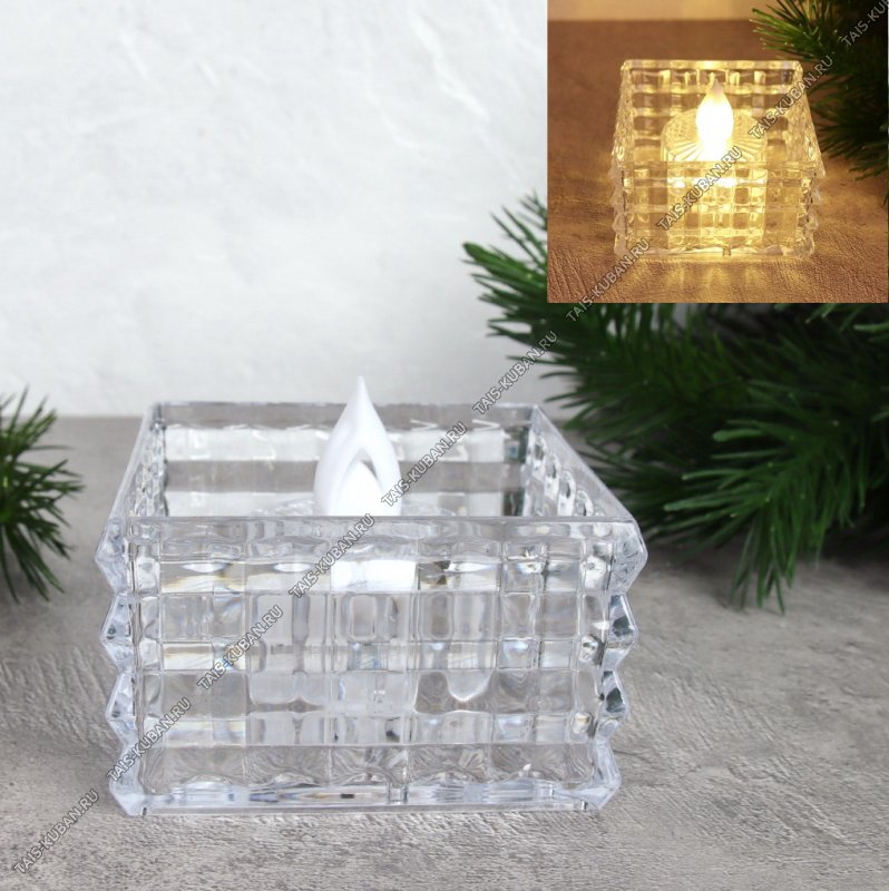 Свеча светодиодная (пластик) "Кристалл" h5см 6х6см