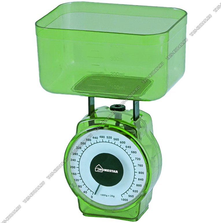 Весы кухонные с чашей, механ до 1кг, дел.10г,чаша 400мл,зелен.(40)