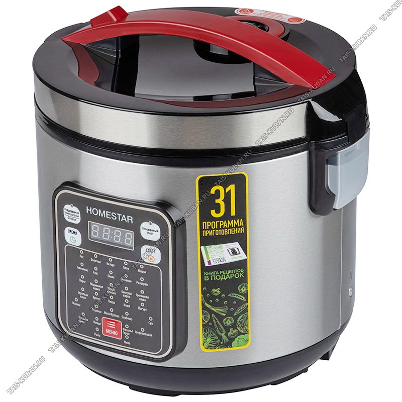 Мультиварка корпус из нержавеющей стали 900Вт 5л, 31 программа, LED дисплей, чаша с антипригарным покрытием, таймер, регулировка t, отложенный старт, автоотключение, мерный стакан,ложка, контейнер-пароварка, цвет черный/серебро (4)