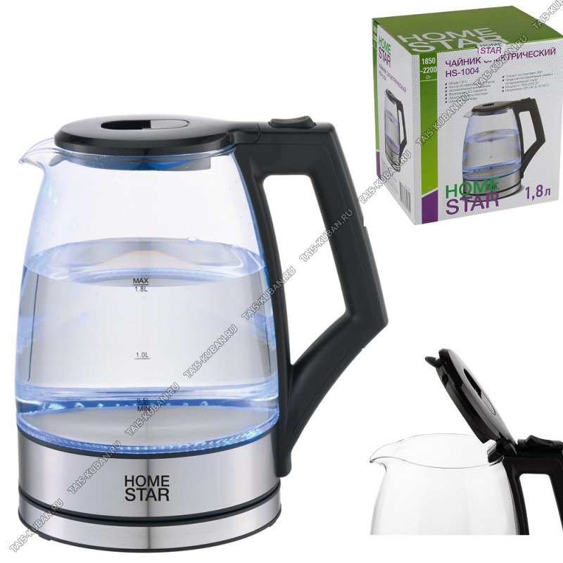Чайник стекло 1,8л 1500Вт диск, черный/сталь (12) Чайник стекло 1,8л 1500Вт диск, черный/сталь (12)