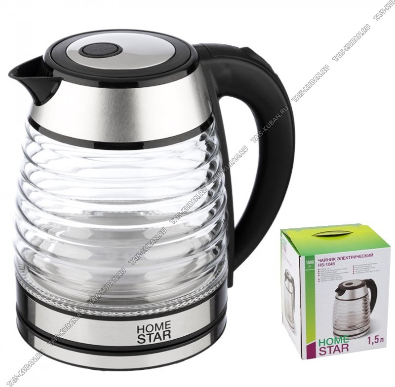 Чайник стекло 1,8л 1500Вт диск, рифленый корпус, черный (12) Чайник стекло 1,8л 1500Вт диск, рифленый корпус, черный (12)