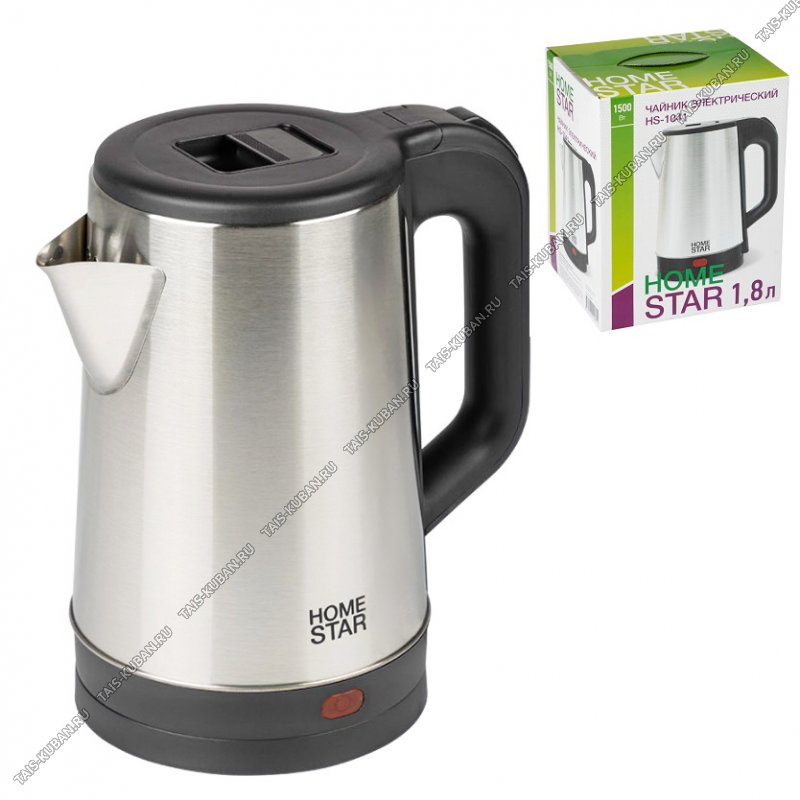 Чайник из нержавеющей стали 1,8л 1500Вт диск, стальной/черный (12)