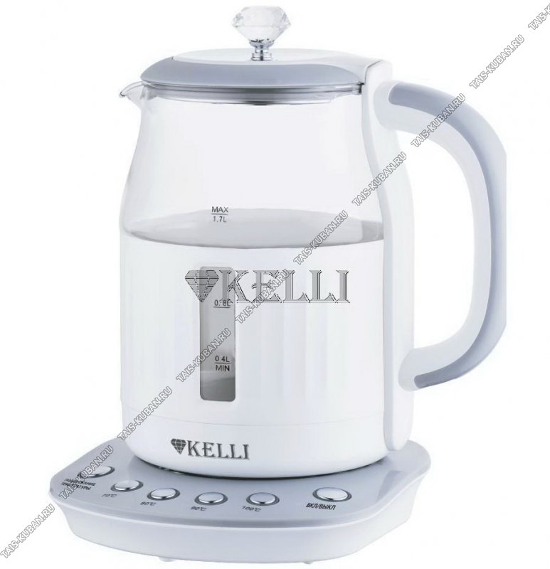Чайник стекло 1,7л 2200Вт диск,подсветка,4режима t (70-100С°),поддержание t,автоотключение,вращение 360°, бело-серый(6)