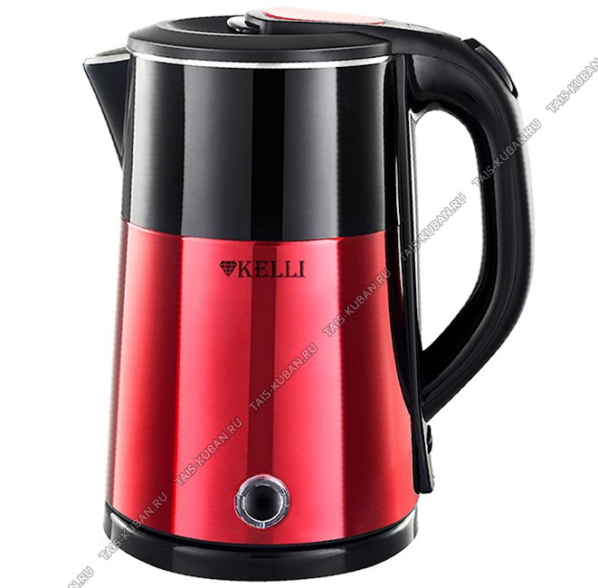 Чайник из нержавеющей стали 1,7л 2200Вт диск, автоотключение, защита без воды, световой индикатор, цвет черный/рубиновый (12)