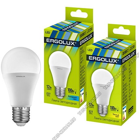 Ergolux-ЛОН E27 12Вт,тёпл.3000К,светов.поток 1155Лм (аналог 100Вт обыч.лампы) h115мм d60мм (10)