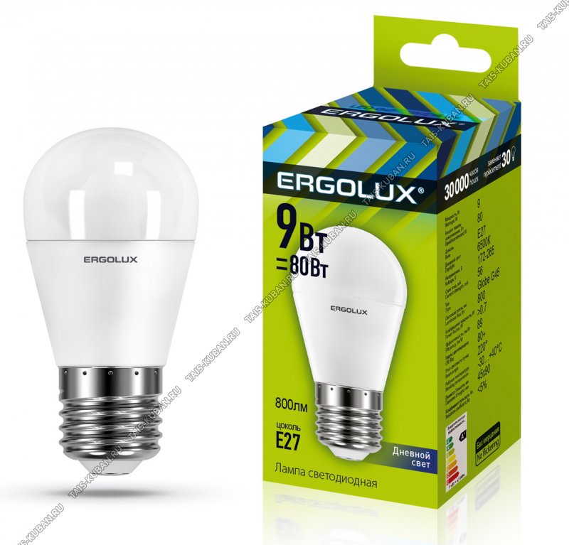 Ergolux-Шар E27 9Вт,холодн.4500К,светов.поток 865Лм (аналог 80Вт обыч.лампы) h88 d45мм (10) Ergolux-Шар E27 9Вт,холодн.4500К,светов.поток 865Лм (аналог 80Вт обыч.лампы) h88 d45мм (10)