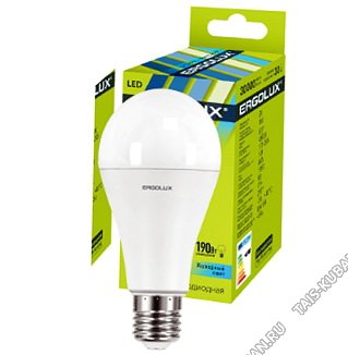 Ergolux-ЛОН E27 20Вт,холодн.6500К,светов.поток 1940Лм (аналог 190Вт обыч.лампы) h134 d65мм (10)