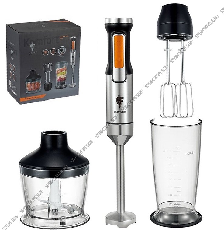 (измельчитель-нож 2-х лопаст прямой, двойной венчик) измельчитель 0,5л, стакан 0,8л, погружная часть/ножи нержавеющая сталь