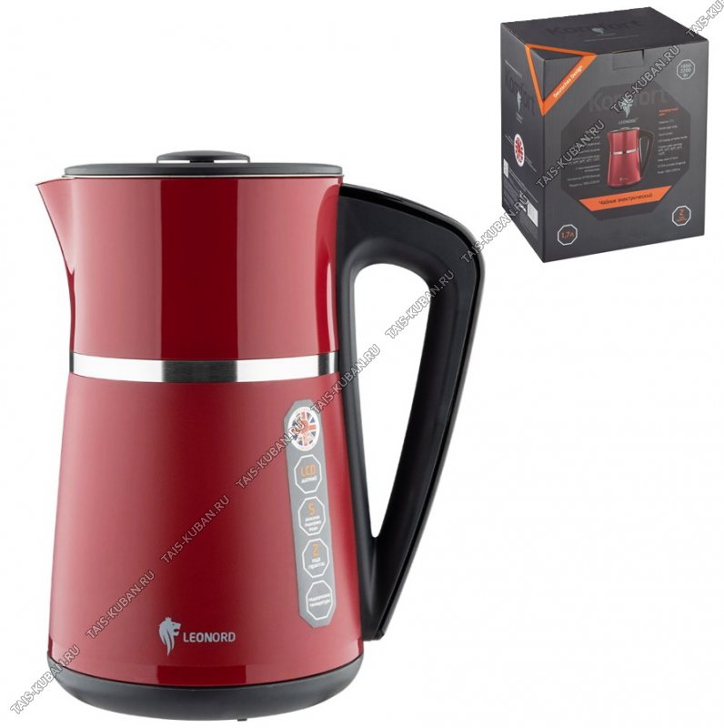 Чайник пластик+нержавеющая сталь1,7л 2200Вт диск, красный (6)
