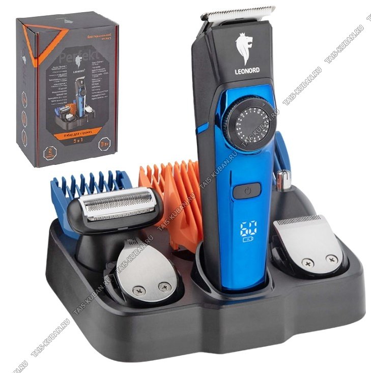 Машинка д/стрижки на подстав. (аккум) 3Вт,бат.1200mAh, 2насад.уров.длины (1-10,11-20мм ),насад.д/усов,бровей,бакенбард, лезвия керм/сталь,LED-дисплей,черн/син (24)