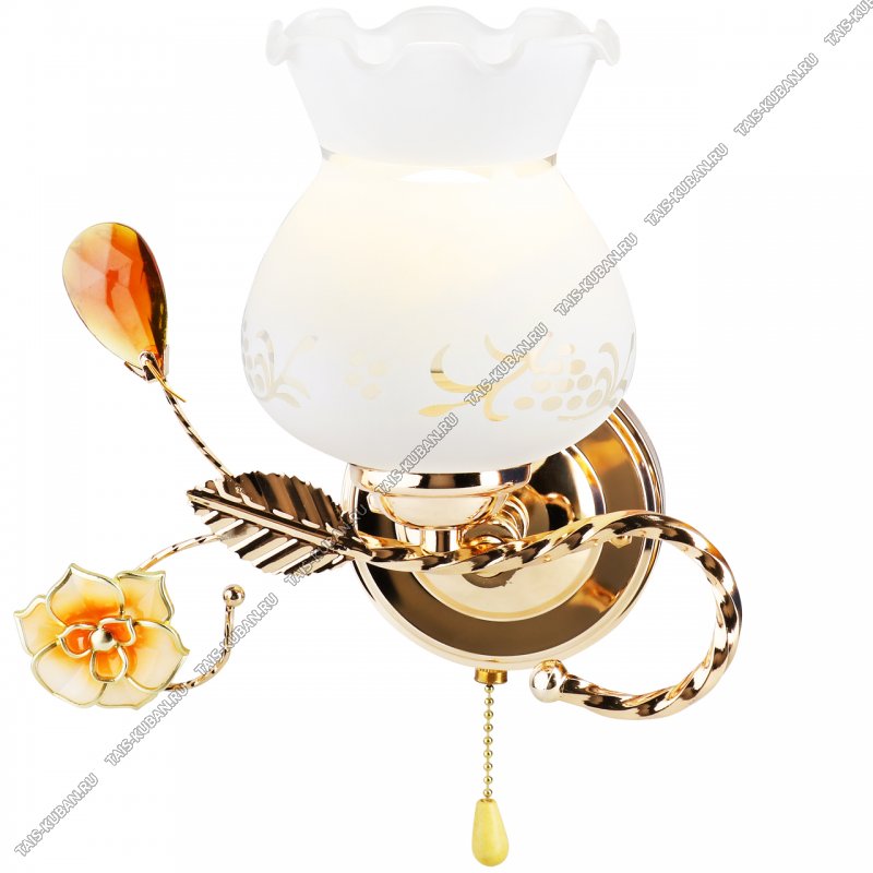 ДИКАЯ РОЗА Бра 1рожк. плафон-стекло/БЕЛ-ЗОЛ, основ-металл/ЗОЛ (220V 40W E27) (6)