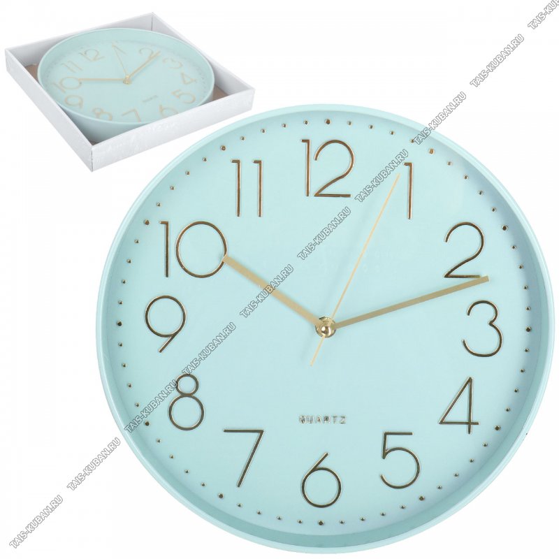 Часы (пластик) круг.d30см "Модерн" мятный,цифры золото, п/у (30)