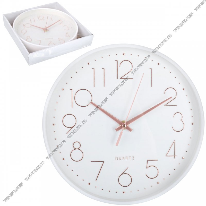 Часы (пластик) круг.d25см "Модерн" белый,цифры золото, п/у (40)