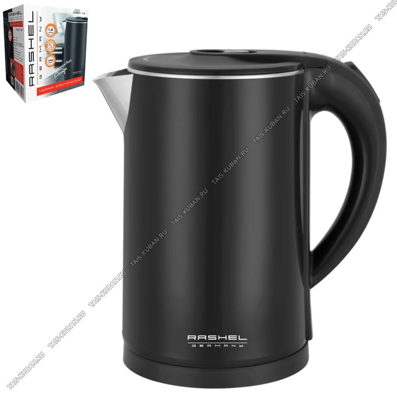 Чайник пластик+нержавеющая сталь 1,8л 1500Вт. диск, 2-ная стенка (внутр-нержавеющая сталь), автоотключение, вращающийся корпус на 360°,защ.б/воды,черный (6)