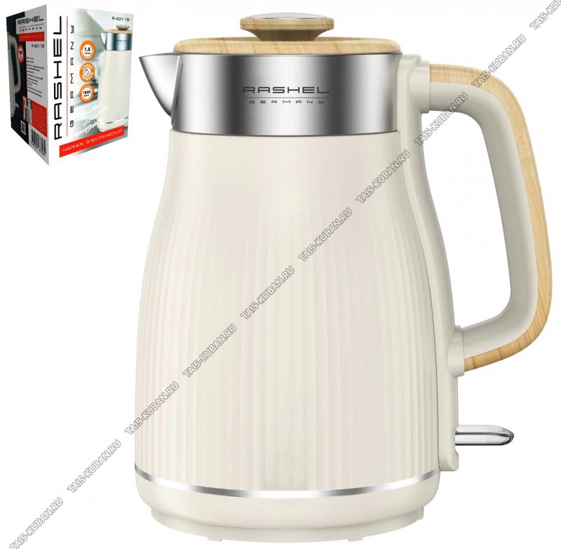 Чайник пластик+нержавеющая сталь 1,8л 1800Вт. диск, 2-ная стенка (внутр-нержавеющая сталь), съемная крышка, ручка под дерево soft touch, автоотключение, вращающийся рифленный корпус на 360°,защ.б/воды, кремовый (6)