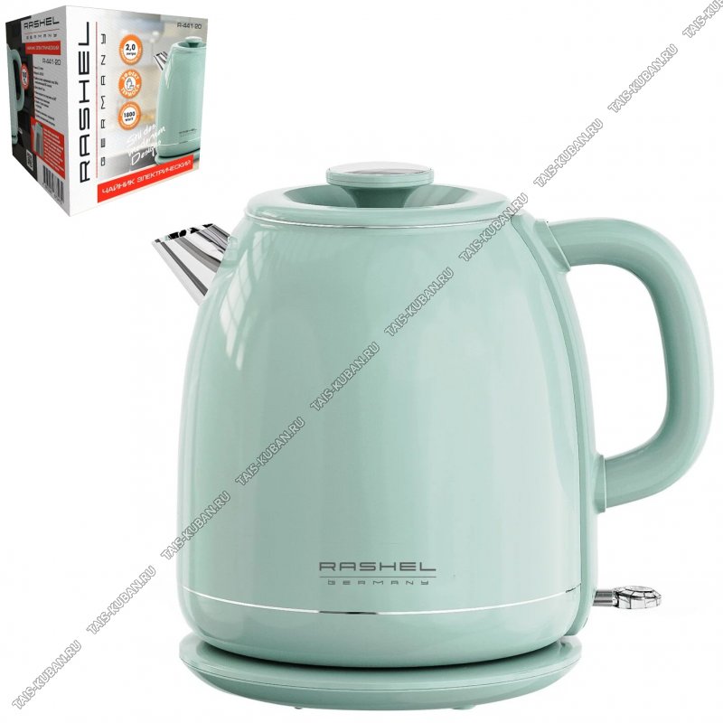 Чайник пластик+нержавеющая сталь 2,0л 1800Вт. диск, 2-ная стенка (внутр-нержавеющая сталь), съемная крышка, автоотключение, вращающийся корпус на 360°,защ.б/воды, прорез.ножки, бирюзовый (6)