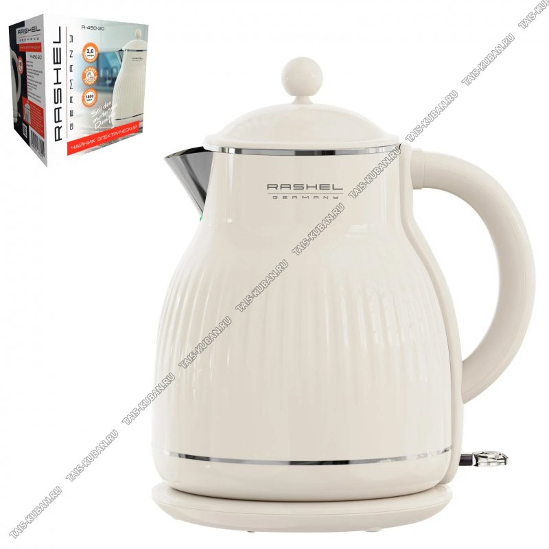 Чайник пластик+нержавеющая 2,0л 1800Вт. диск,2-ная стенка (внутр-нержавеющая сталь), съемная крышка, автоотключение, вращающийся корпус на 360°,защ.б/воды, прорез.ножки, прорез.ножки, кремовый, рельеф "полосы" (6)