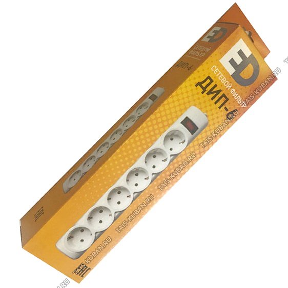 Сетевой фильтр "ДИП" (с выключат) 6 гнезд, L2м,ПВС сеч.3х0.75 ,10А,6.0кВт,с з/з евростандарт 250В (20)