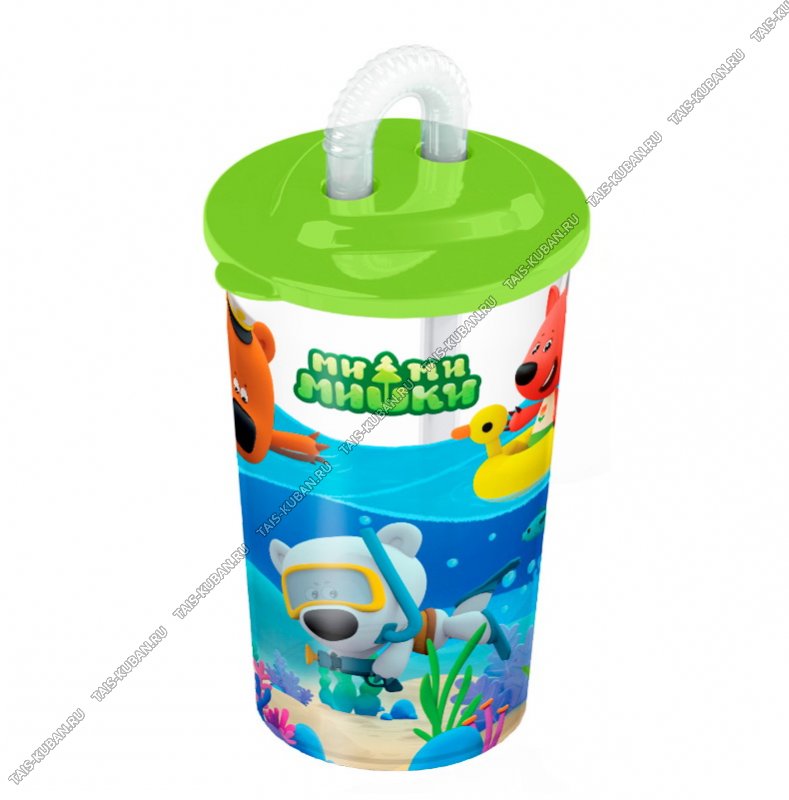 Стакан с крышкой,с трубочкой 0,4л "Ми-Ми-Мишки" зелен (d8 h15см) Бытпласт (16)