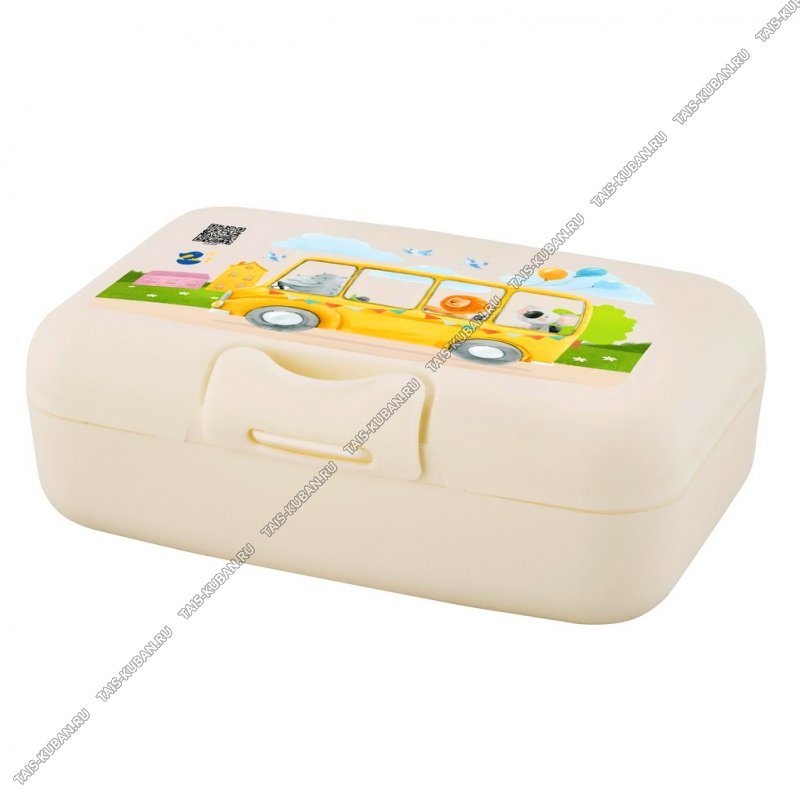 Ланч-бокс 0,7л "Весёлый автобус" ,молочный (16х10,5 h5,5см) Plast Team (18)
