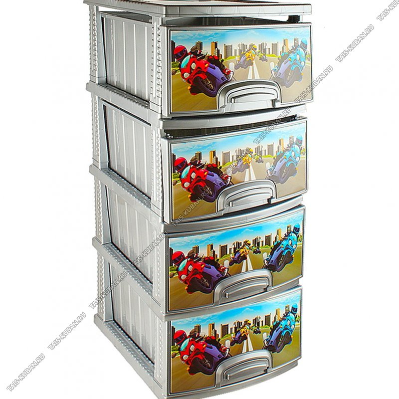 Комод 4-х секц."Мотокросс" серебро (40х48 h98см) Русспласт (1)