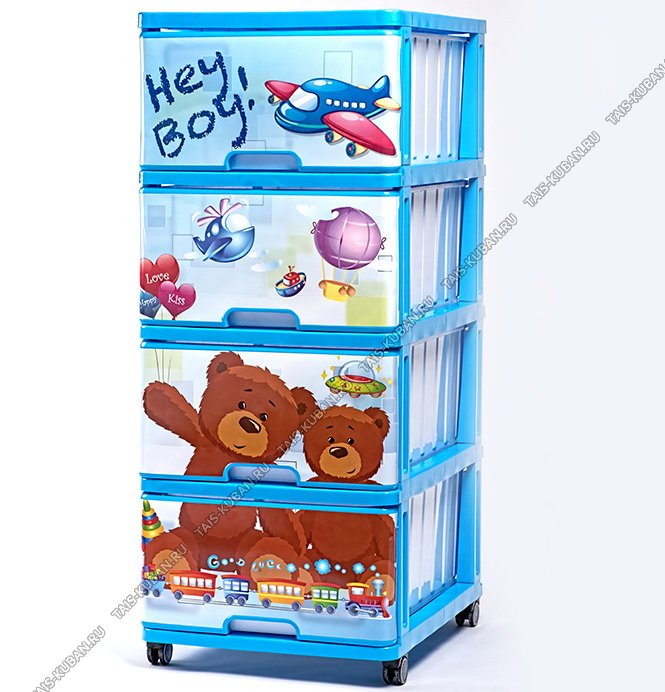 Комод 4-х секц."Мишки" на колесах, синий (40х50 h98,5см) DD (1)