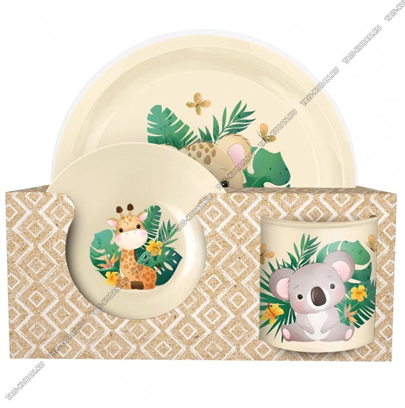 Посуда н-р 3пр "Джунгли" (тарелка d21см,миска 0,3л d13см,кружка 380мл) св.бежев, подарочн.упаковка, Homver (10)