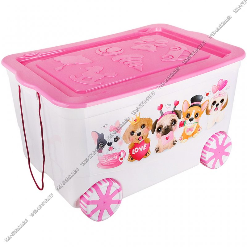 Ящик д/игрушек 55л "КидсБокс" с крышкой,белый/розовый (61х33 h40см) на колесах (6) Эльф