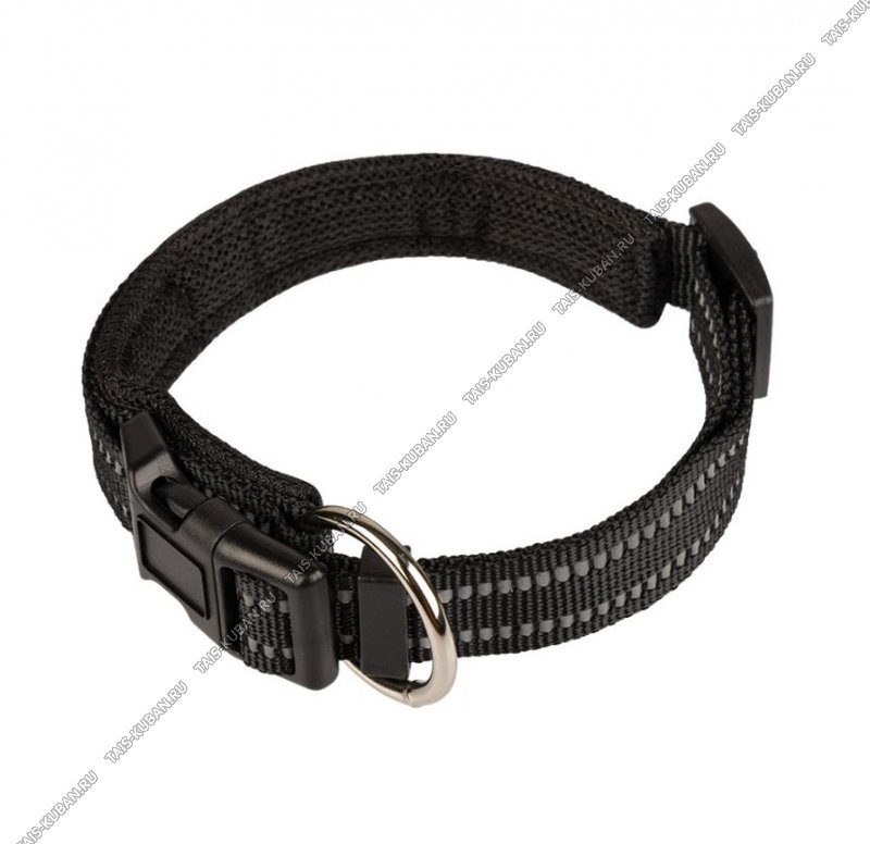 Ошейник для собак с застежкой, светоотражающий, размер L (38-47см) полиэстр,черный