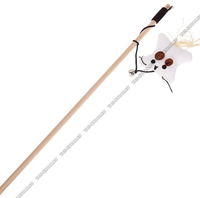 Игрушка-удочка "Белый мышонок" длина 40см дерево, полиэстр, белый