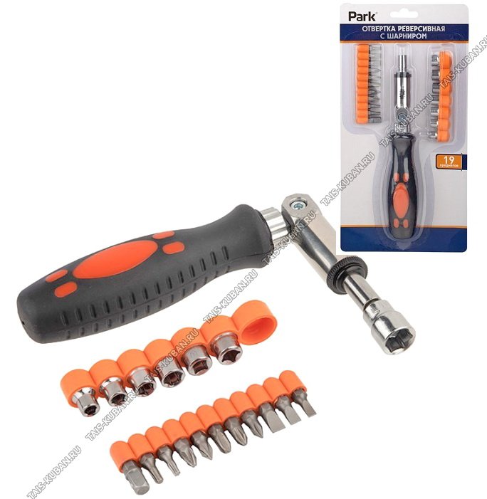 Н-р отвертка реверсивная с шарниром н-р 19предметов, блистер (48)(12)