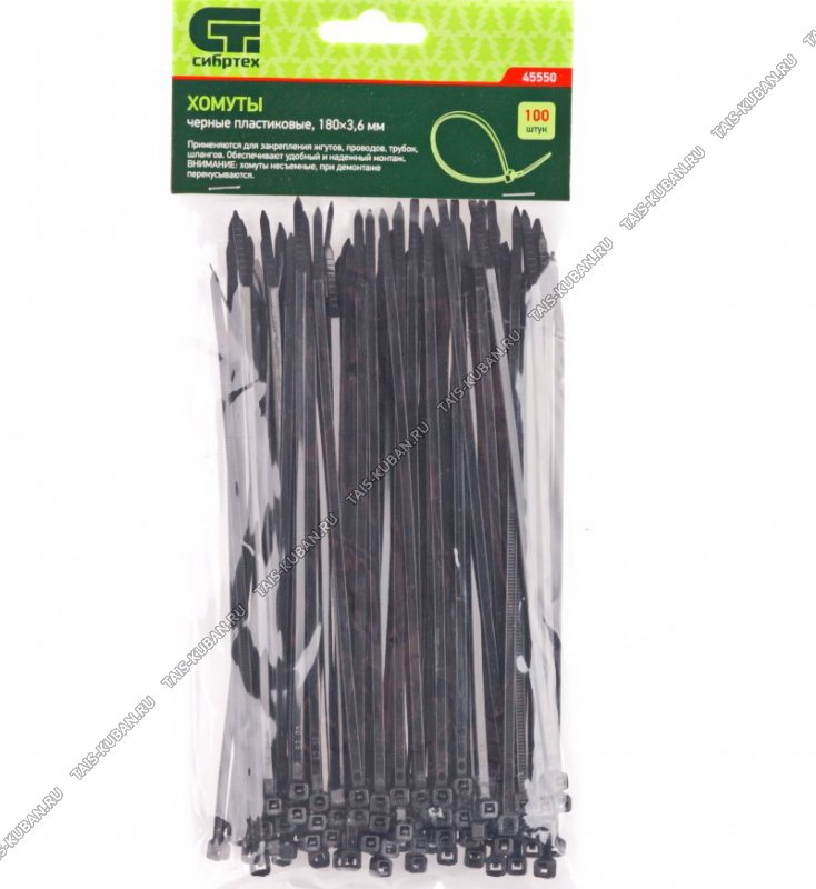 Хомуты плас. черные 180х3,6мм (100шт/уп)
