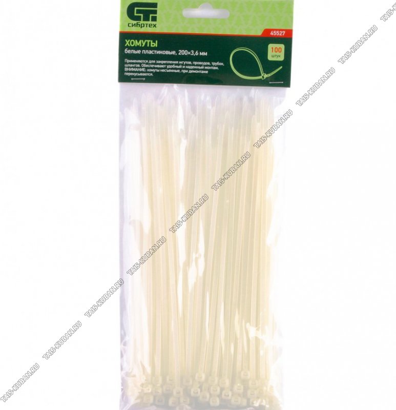 Хомуты плас. белые 200х3,6мм (100шт/уп)