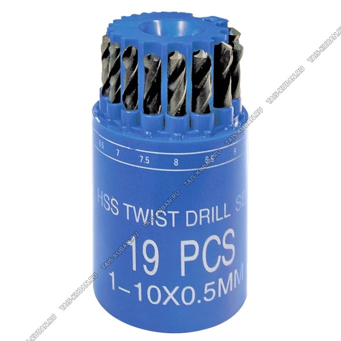 Сверла по мет.н-р 19шт.(1-10мм,через 0,5мм) HSS,цилинд.хвостовик,в стакане