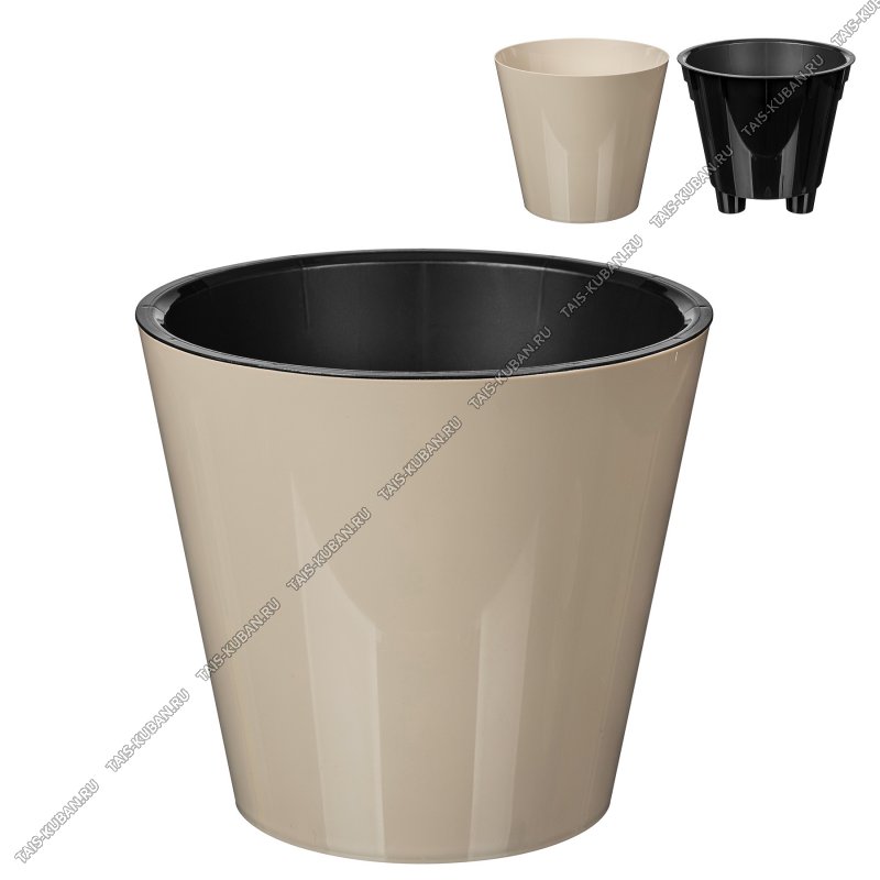 Кашпо "Розмари" бежевый глянец 5,0л d23 h21см,вкладыш черный (15)