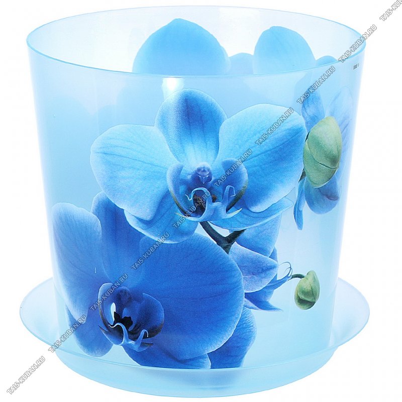 Кашпо "м.Орхидея голубая" гол.прозр 1,2л d12,5 h12,5см,с поддон.(48)