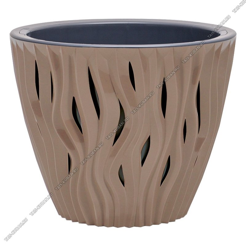 Кашпо "Вдохновение" мокачино 5,7л вкладыш с ручками черный d23 h19,5cм (8)